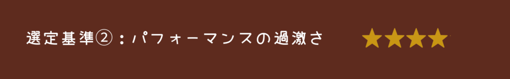 | パフォーマンスの過激さ | 🌟🌟🌟🌟(4) | 🌟🌟🌟🌟(4) | 🌟🌟🌟🌟🌟(5) |
