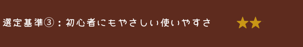 | 使いやすさ | 🌟🌟🌟🌟(4) | 🌟🌟(2) | 🌟🌟🌟🌟(4) |